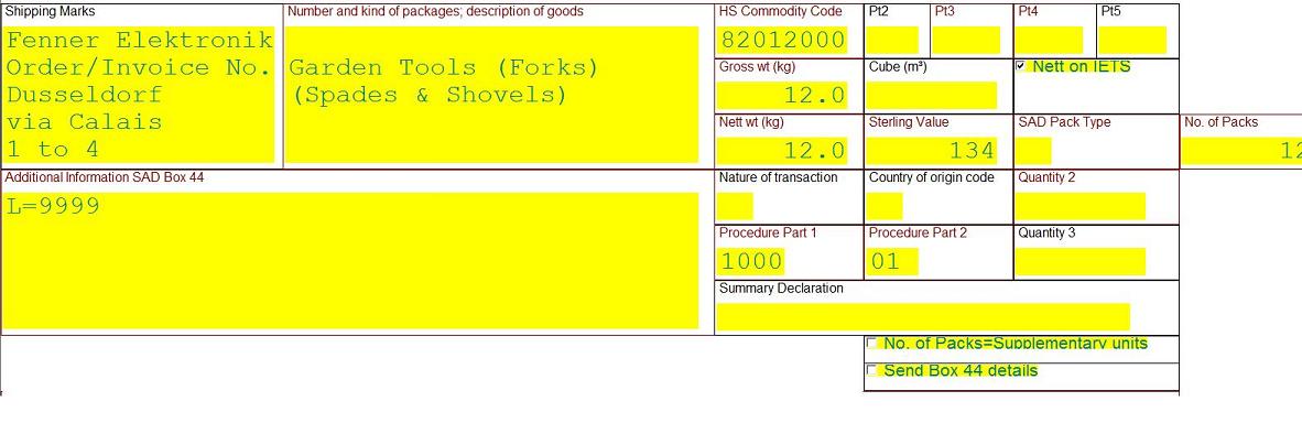 mirrors the elements that were required on a C88 form, but you may need to collect slightly more data, eg Nationality of vessel and Port of Loading Codes. Please note that there is a drop down list available in