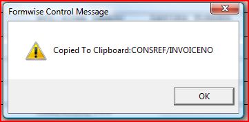 and you can then click on the OK button of this Formwise Control Message, move to Browse/Amend/Create Consignments and press "Ctrl and V" to paste the reference into the code field and have the system move to that job. You can then Open, Edit and Save the job This option works with any field, even in Browse mode on the Browse/Amend/Create consignment screens. The only variation being that if you double click on an e-mail address, then the system will automatically load your Outlook mail with a New message and recipient completed.
